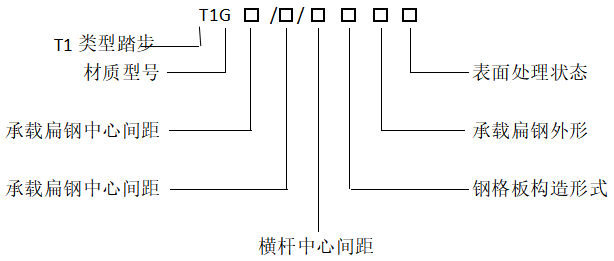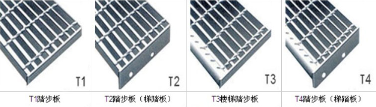 舉例:T1G253/30/100PG以上規格是采用25×3普通平面型扁鋼,扁鋼間距為30mm,橫桿間距為100的熱鍍鋅T1`踏步板。